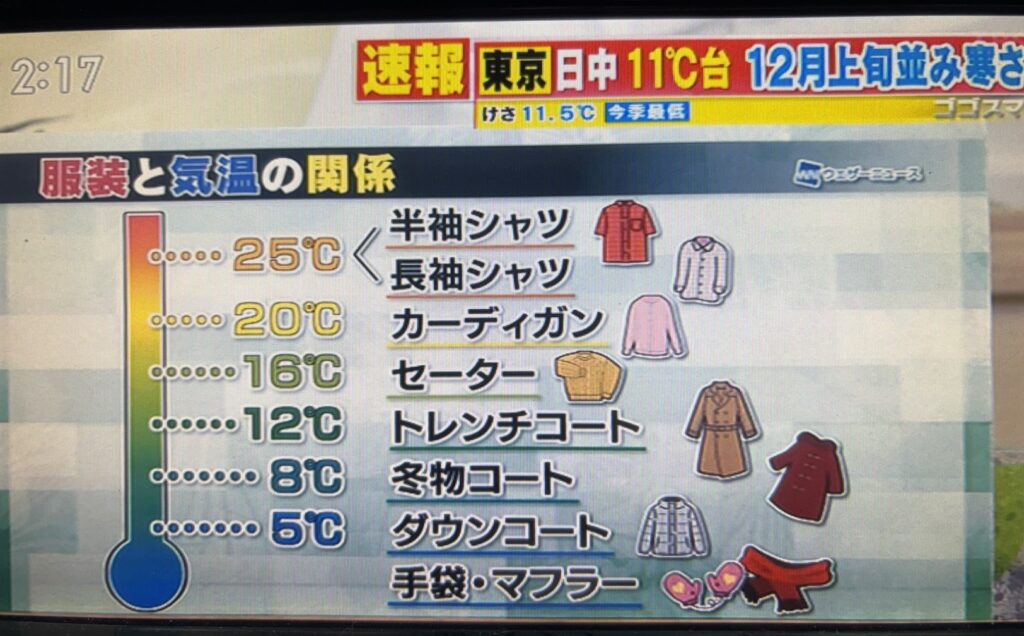 テレビで説明をしていた「冬物コート」を着る寒さだ。